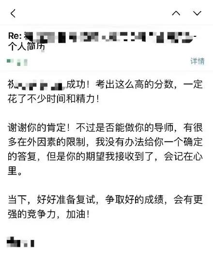 这位导师的回答非常直接,虽然相当打击人,但是好歹导师做出了回复,而且可能根据所有考生的情况才做出的综合评判,这样就属于没有希望,火速寻找下一位导师吧。