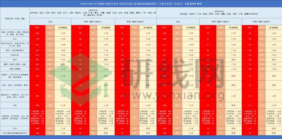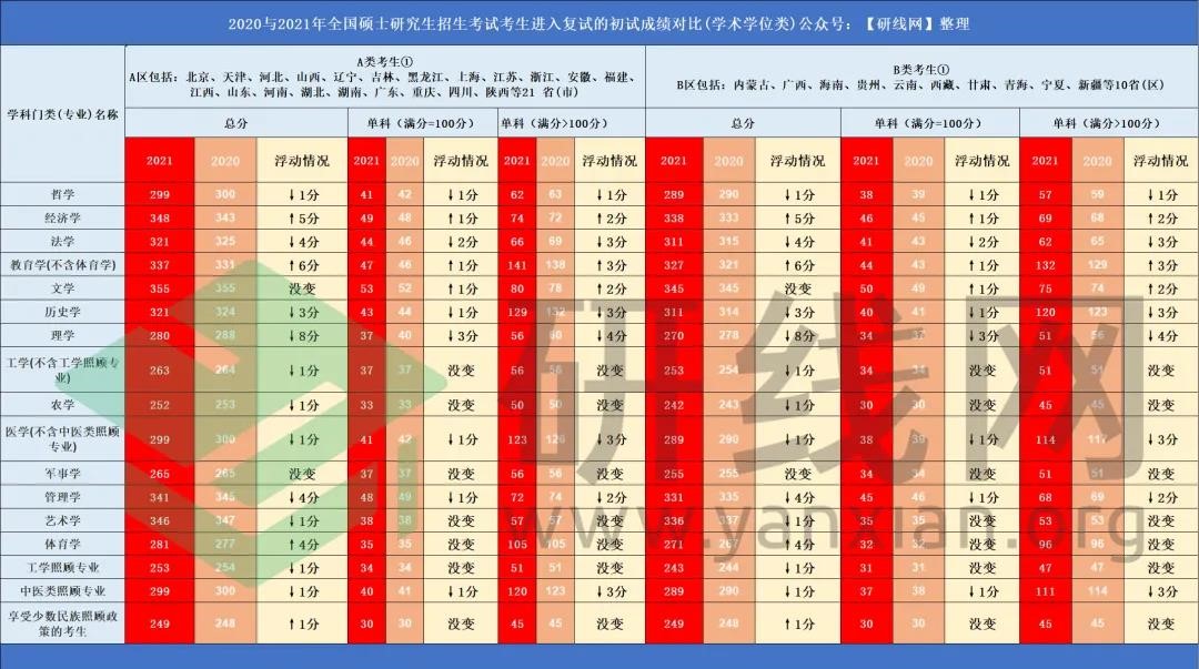国家线公布之后,你还好嘛,对比20年,21年变动如下:有升有降,各专业考生有哭有笑~