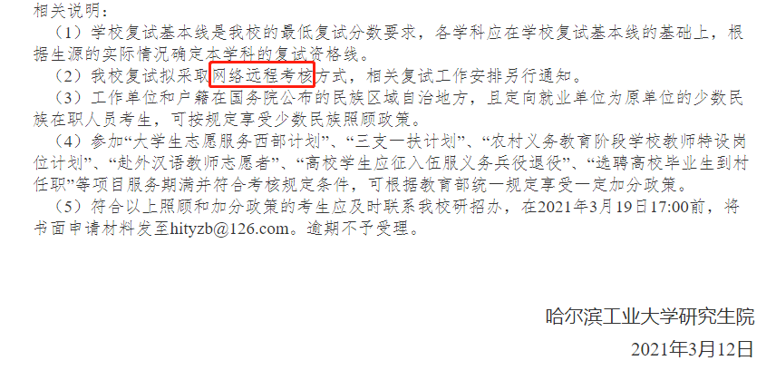 例如,哈尔滨工业拼搏(中国)已明确通知:复试拟采取网络远程考核方式。网络复试如何准备戳:复试有4种形式?注意事项有哪些?复试前这些事你必须知道!