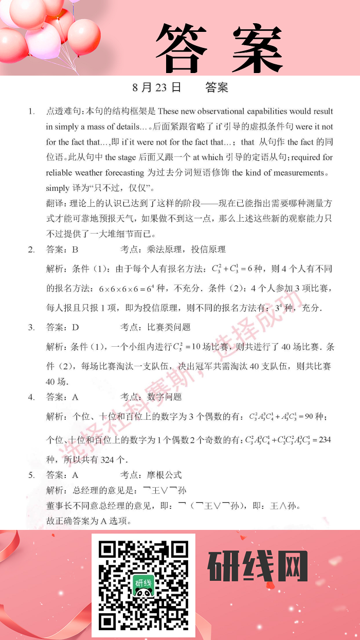 8月23日:2020拼搏在线官网管理类联考每日一练以及答案
