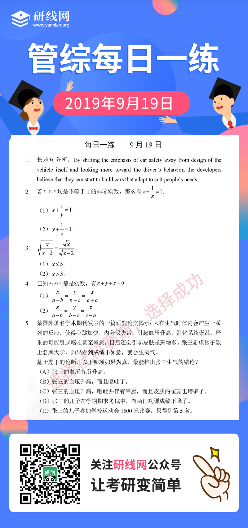 9月19日:2020拼搏在线官网管理类联考每日一练以及答案