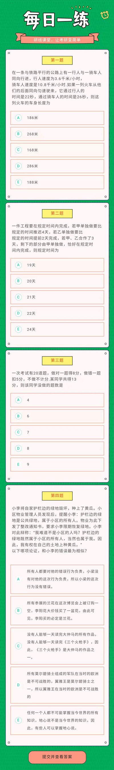 为了更好的复习和巩固已经学过的知识,研线网小编为大家整理出几道题,作为每日的练习,希望能够帮助到同学们哦!