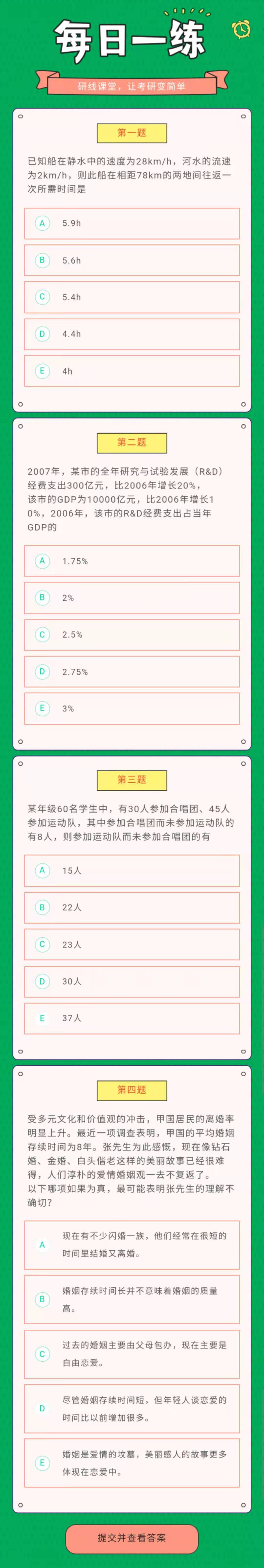 为了更好的复习和巩固已经学过的知识,研线网小编为大家整理出几道题,作为每日的练习,希望能够帮助到同学们哦!