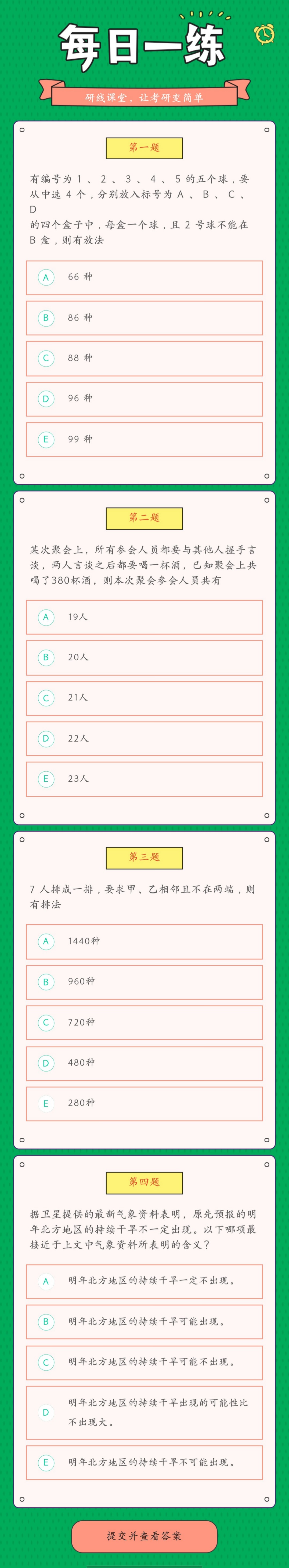 为了更好的复习和巩固已经学过的知识,研线网小编为大家整理出几道题,作为每日的练习,希望能够帮助到同学们哦!