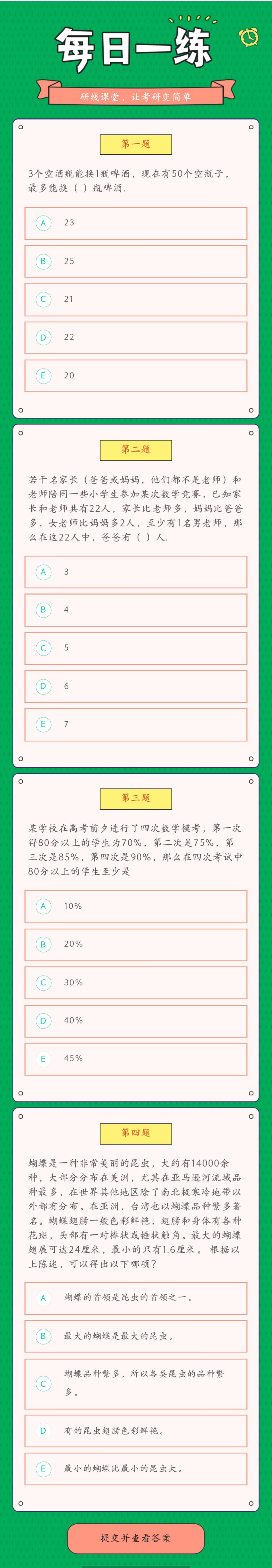 为了更好的复习和巩固已经学过的知识,研线网小编为大家整理出几道题,作为每日的练习,希望能够帮助到同学们哦!