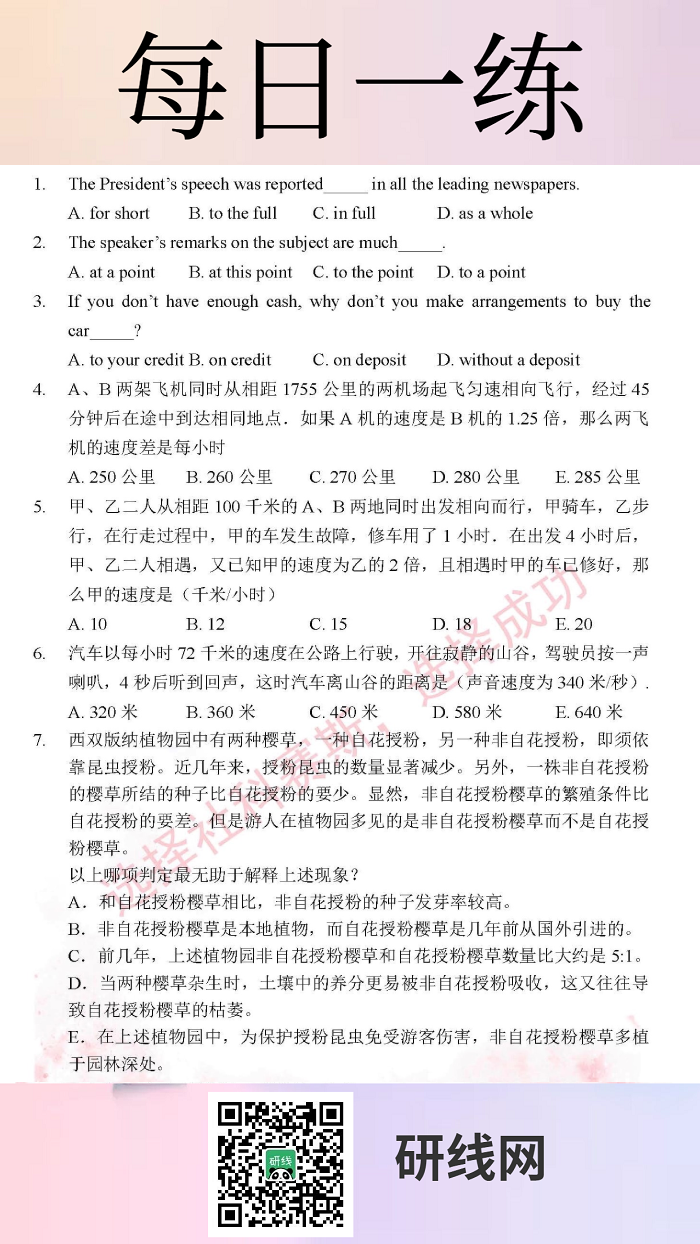 以上就是今日每日一练的全部内容,跟着每日一练,拼搏在线官网轻松复习!更多考试练习,点击管理类联考每日一练!