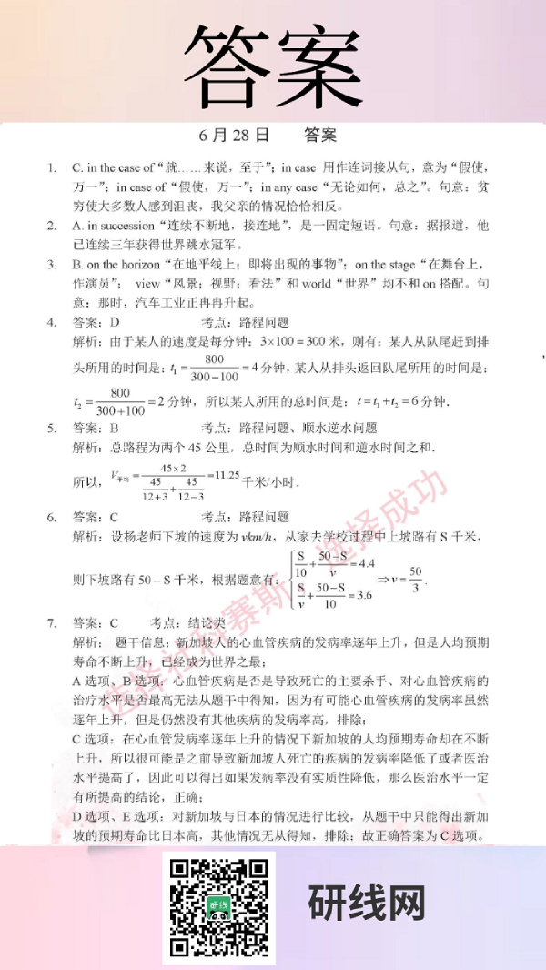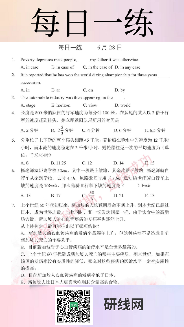 为了更好的复习和巩固已经学过的知识,研线网小编为大家整理出几道题,作为每日的练习,希望能够帮助到同学们哦!