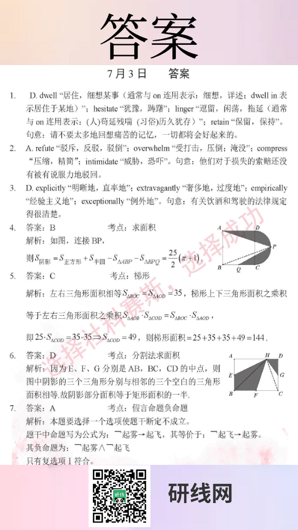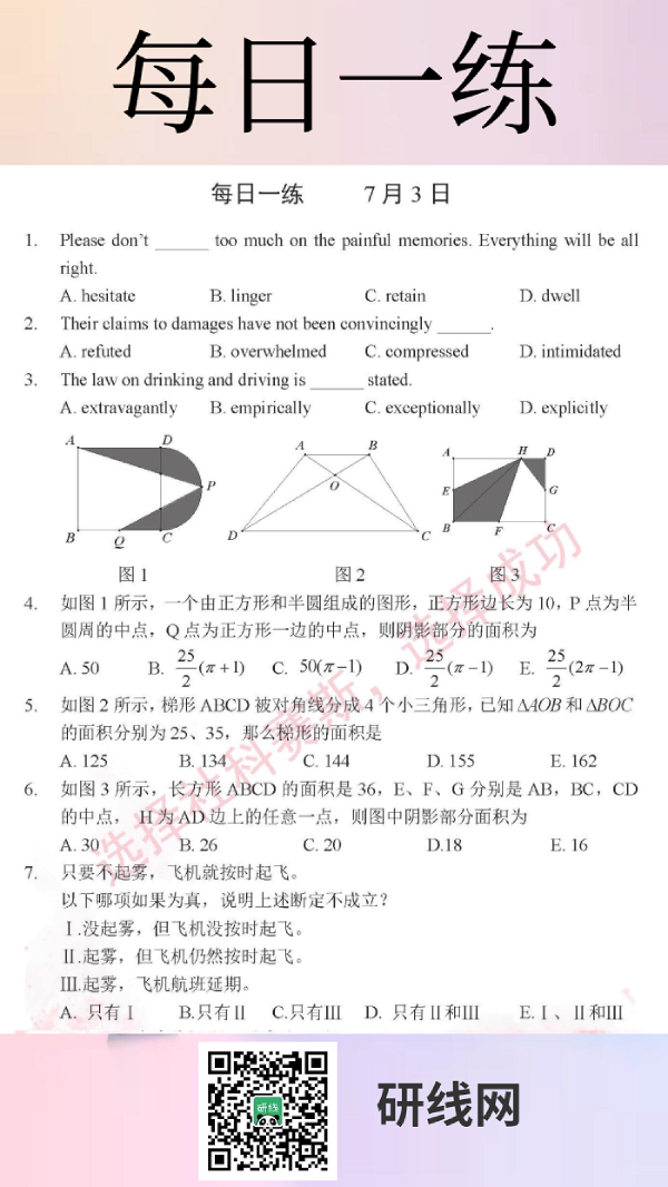 为了更好的复习和巩固已经学过的知识,研线网小编为大家整理出几道题,作为每日的练习,希望能够帮助到同学们哦!