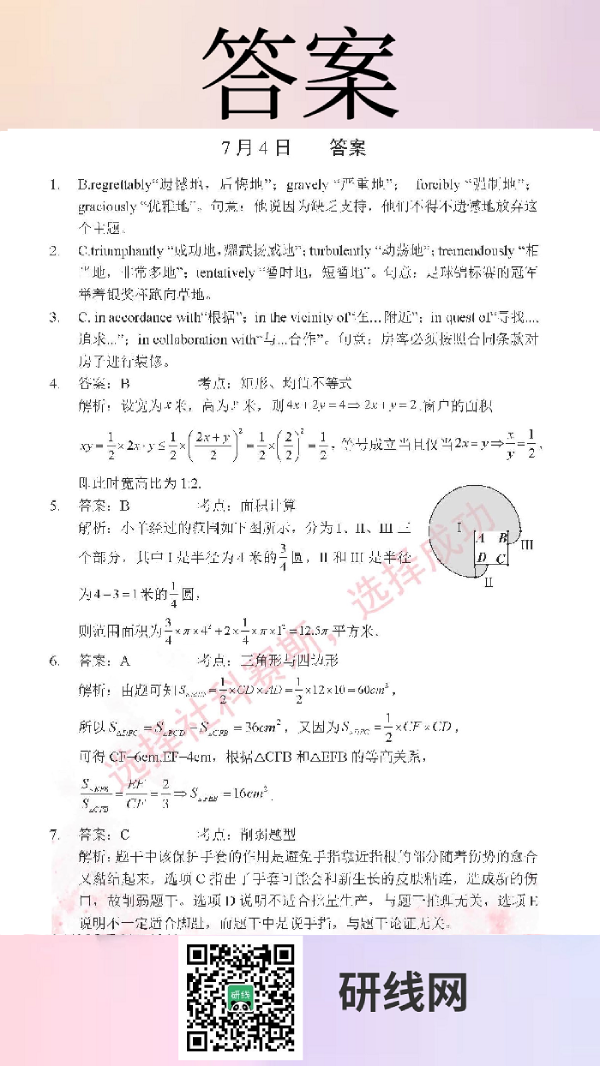 为了更好的复习和巩固已经学过的知识,研线网小编为大家整理出几道题,作为每日的练习,希望能够帮助到同学们哦!