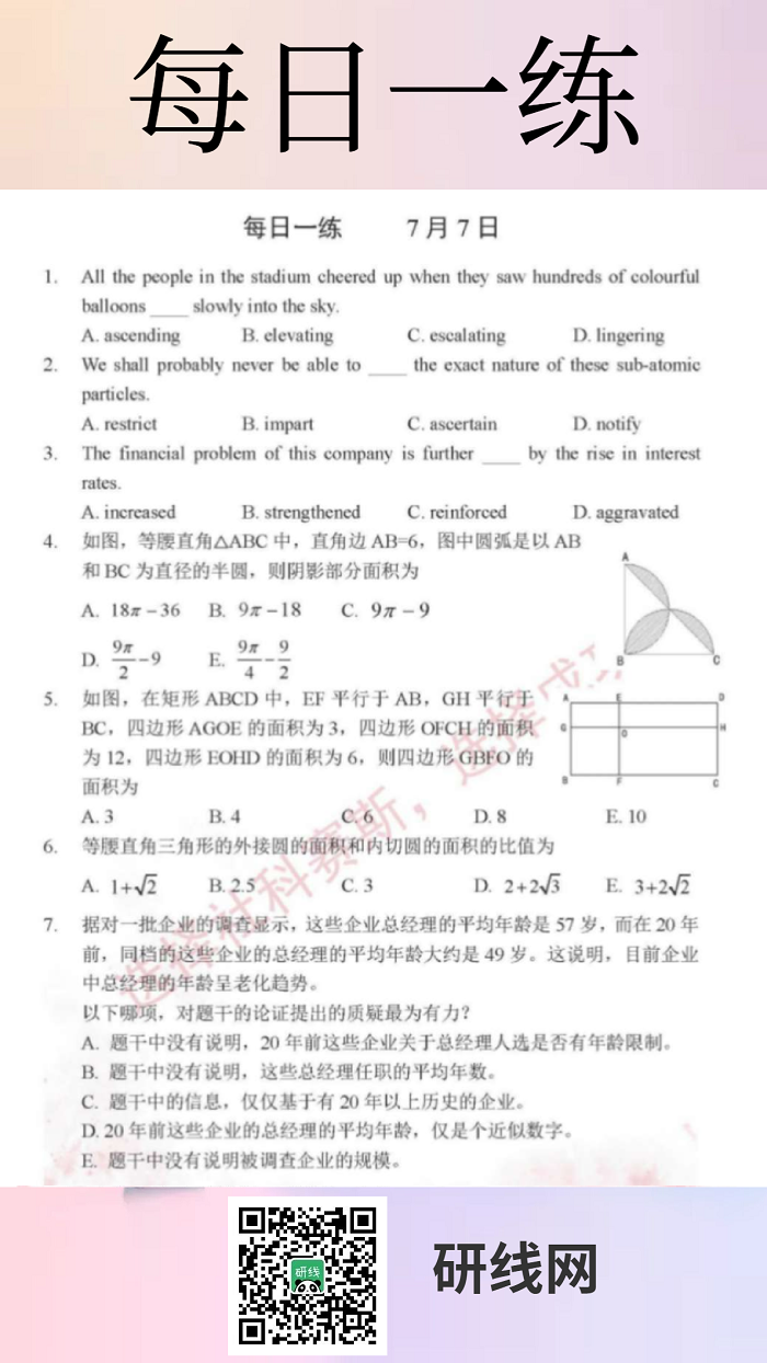以上就是今日每日一练的全部内容,跟着每日一练,拼搏在线官网轻松复习!更多考试练习,点击管理类联考每日一练!