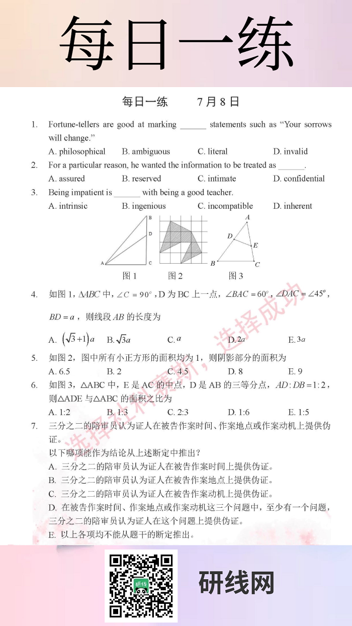 7月8日:2020拼搏在线官网管理类联考每日一练以及答案