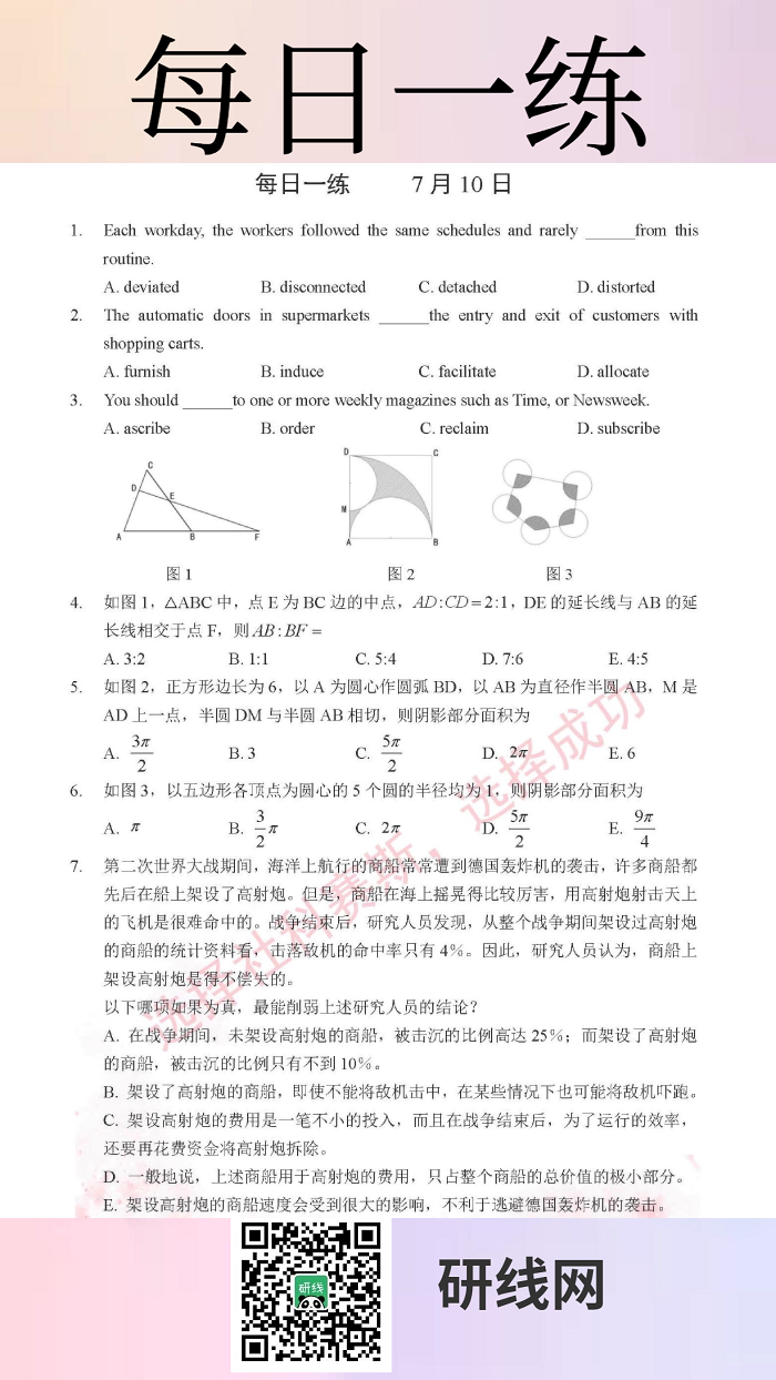 7月10日:2020拼搏在线官网管理类联考每日一练以及答案