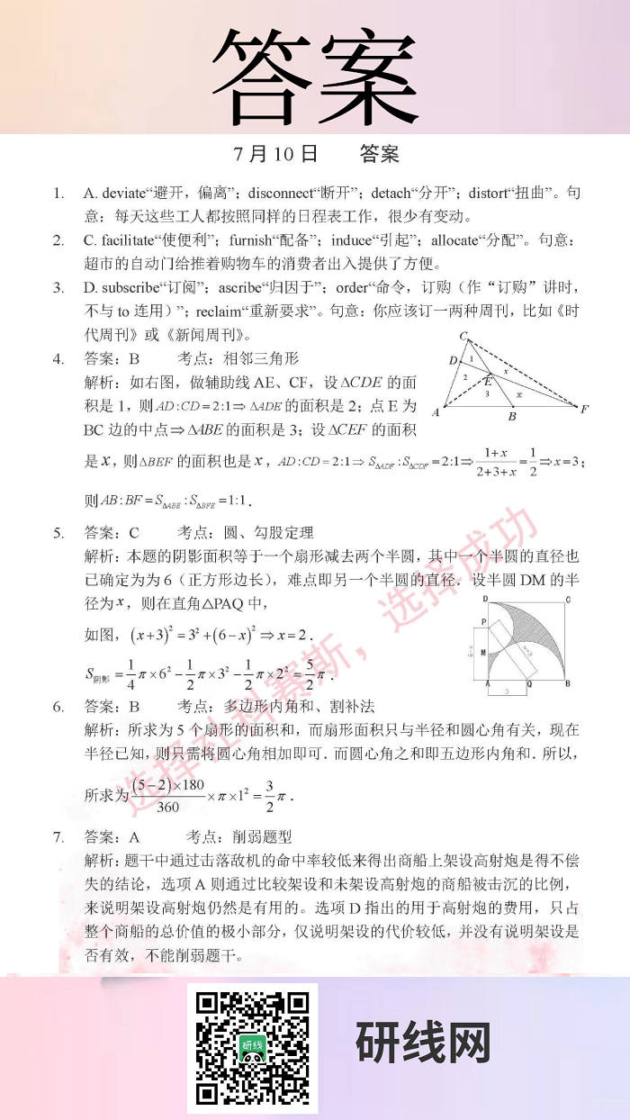 为了更好的复习和巩固已经学过的知识,研线网小编为大家整理出几道题,作为每日的练习,希望能够帮助到同学们哦!