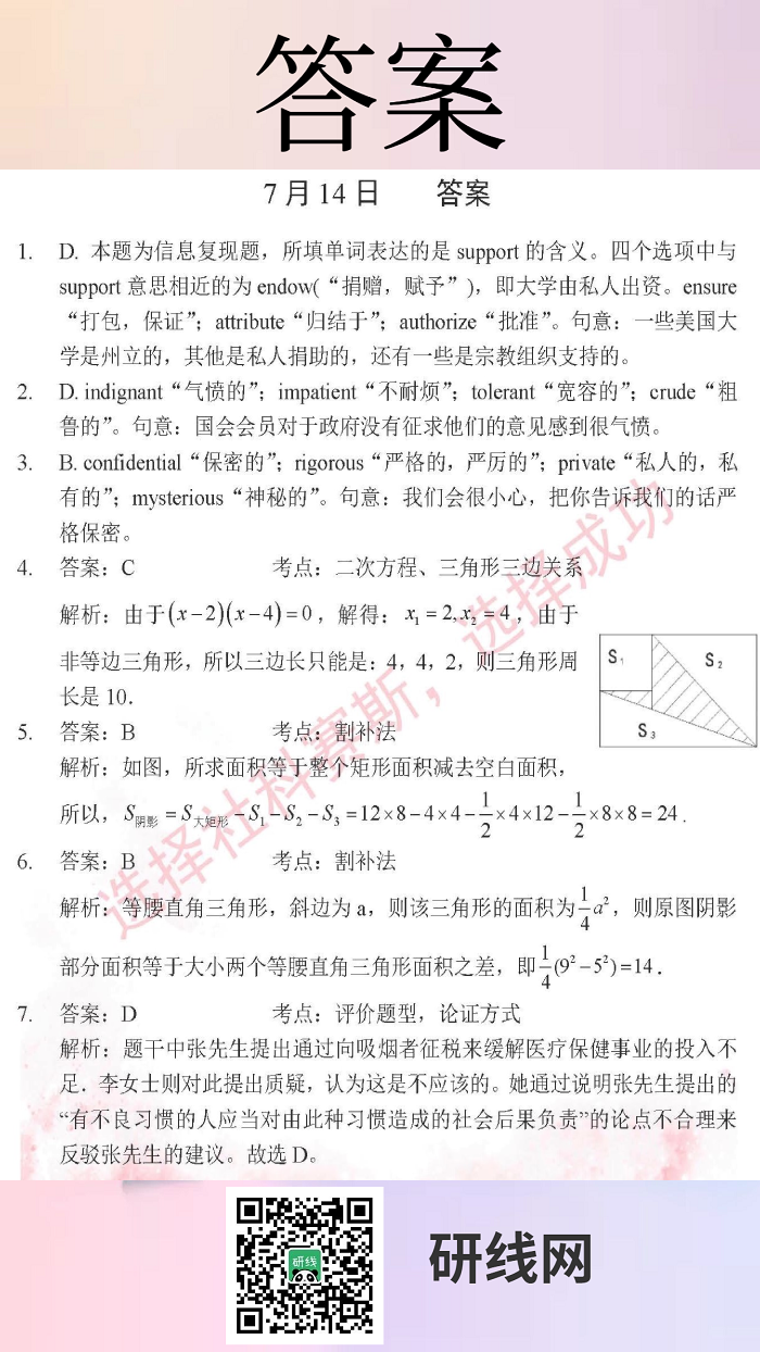 7月14日:2020拼搏在线官网管理类联考每日一练以及答案