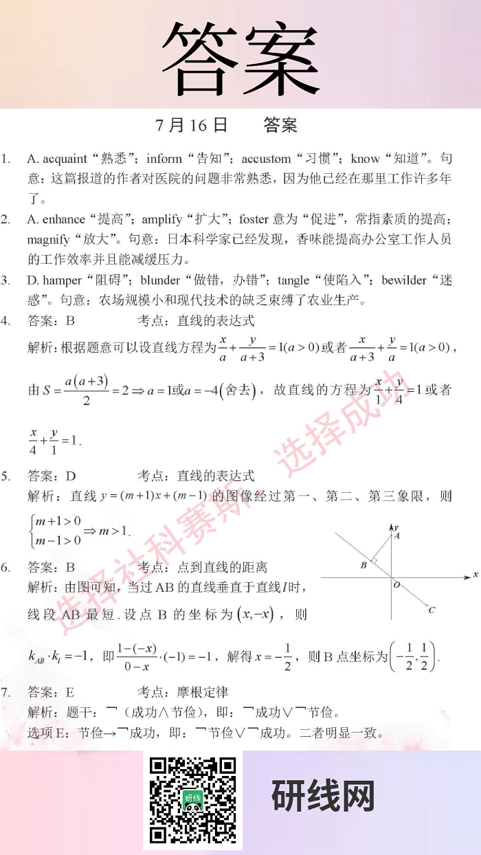 7月16日:2020拼搏在线官网管理类联考每日一练以及答案