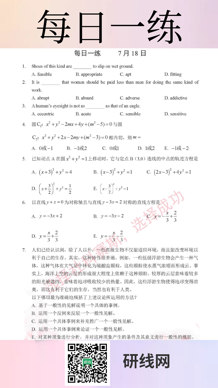 为了更好的复习和巩固已经学过的知识,研线网小编为大家整理出几道题,作为每日的练习,希望能够帮助到同学们哦!