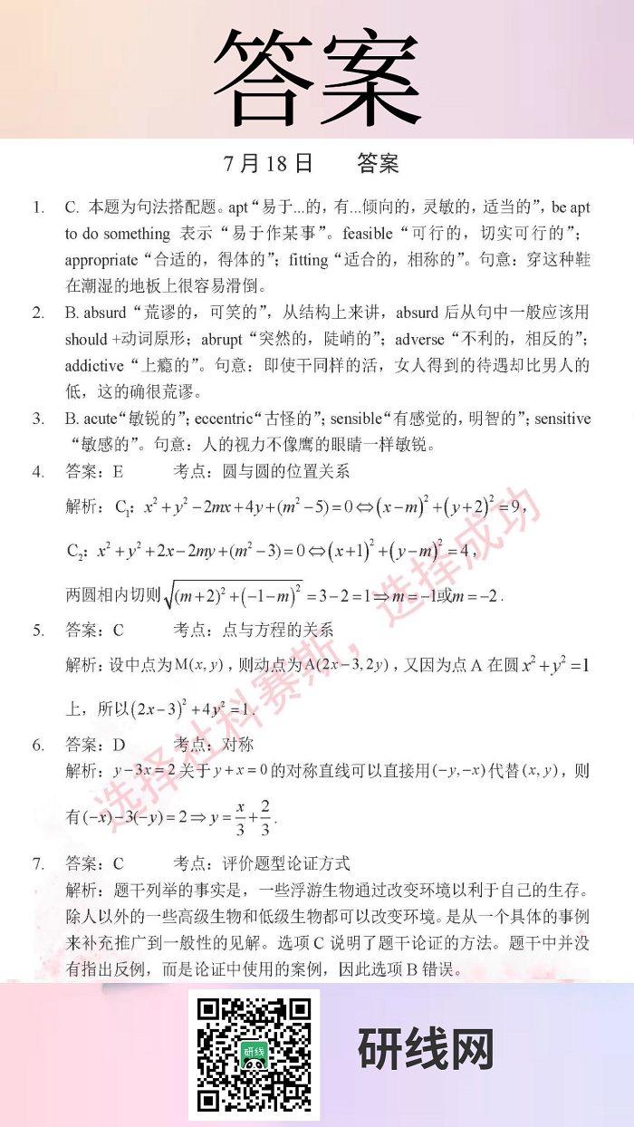 7月18日:2020拼搏在线官网管理类联考每日一练以及答案