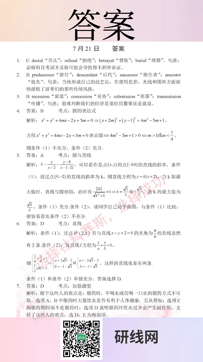 7月21日:2020拼搏在线官网管理类联考每日一练以及答案