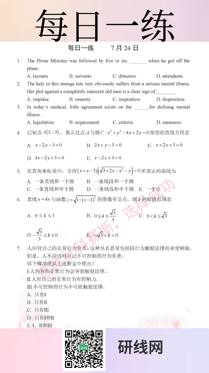 为了更好的复习和巩固已经学过的知识,研线网小编为大家整理出几道题,作为每日的练习,希望能够帮助到同学们哦!