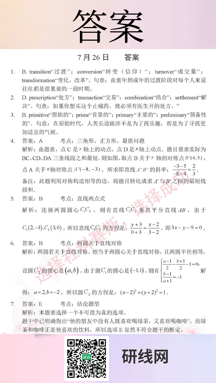 7月26日:2020拼搏在线官网管理类联考每日一练以及答案