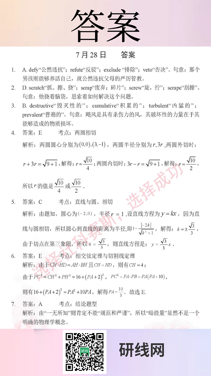 7月28日:2020拼搏在线官网管理类联考每日一练以及答案