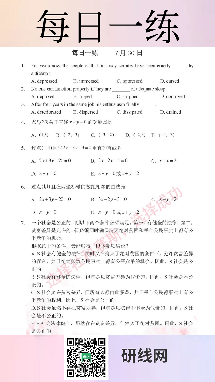 为了更好的复习和巩固已经学过的知识,研线网小编为大家整理出几道题,作为每日的练习,希望能够帮助到同学们哦!
