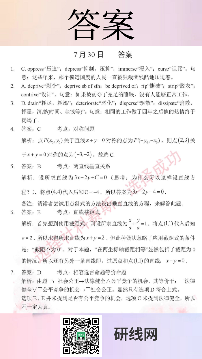 7月30日:2020拼搏在线官网管理类联考每日一练以及答案