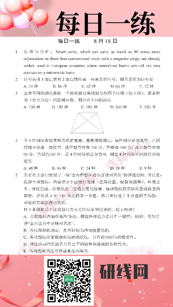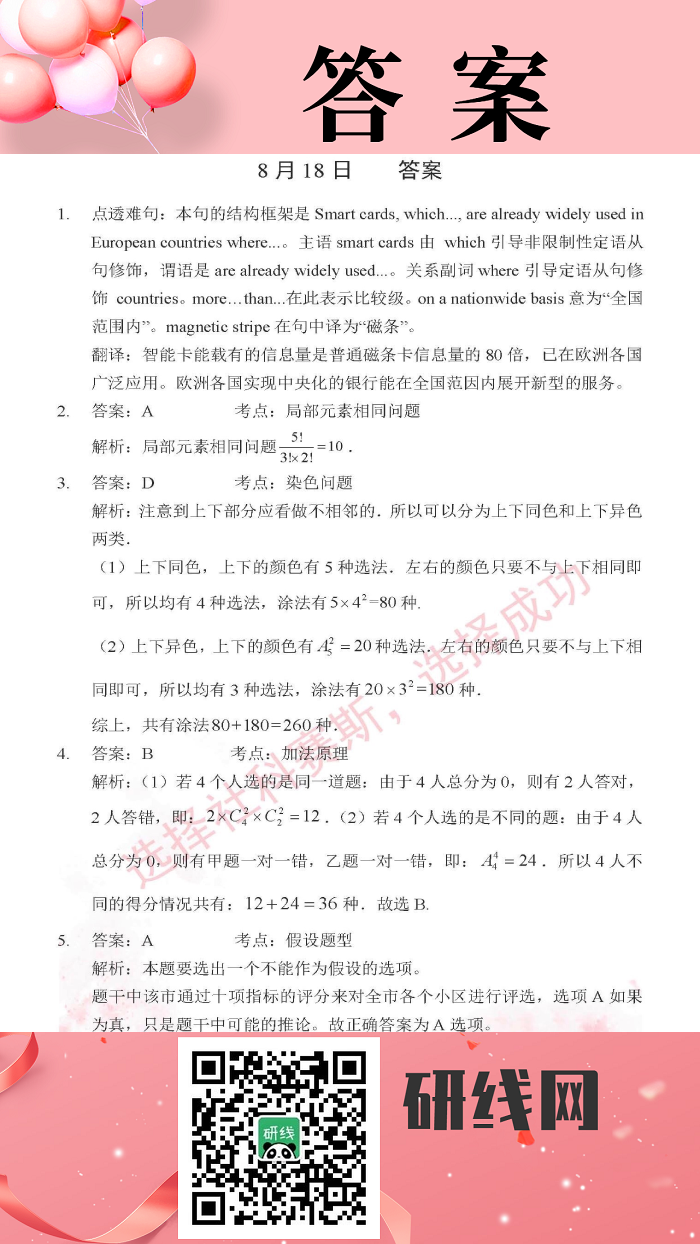 8月18日:2020拼搏在线官网管理类联考每日一练以及答案