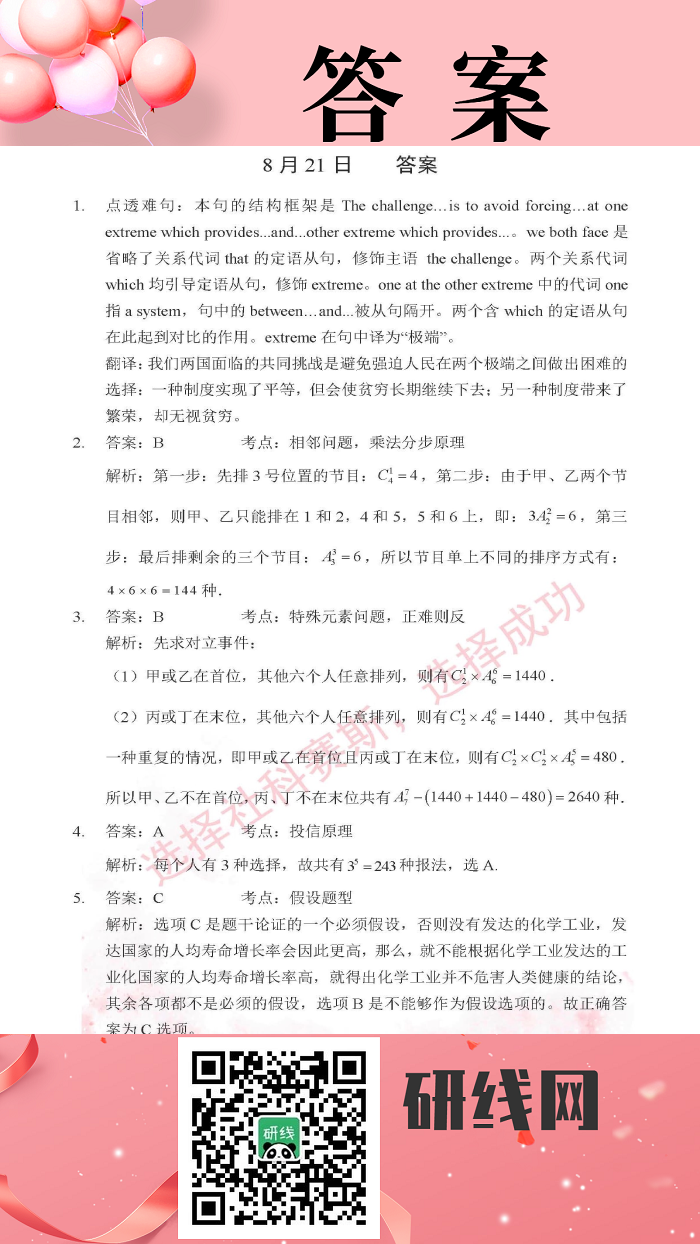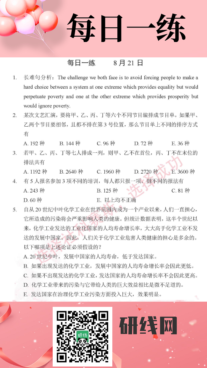 8月21日:2020拼搏在线官网管理类联考每日一练以及答案