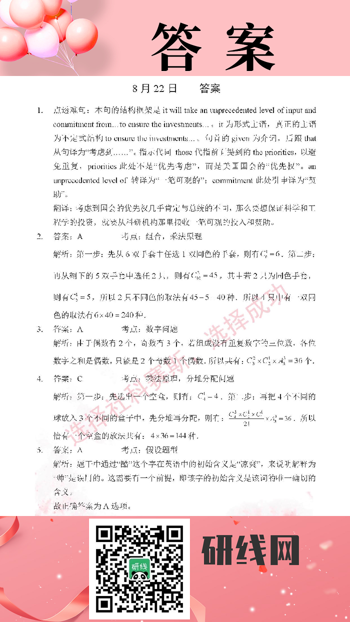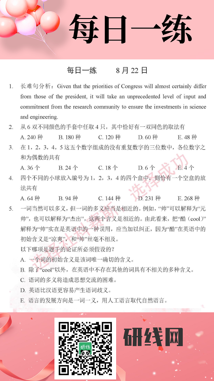 8月22日:2020拼搏在线官网管理类联考每日一练以及答案