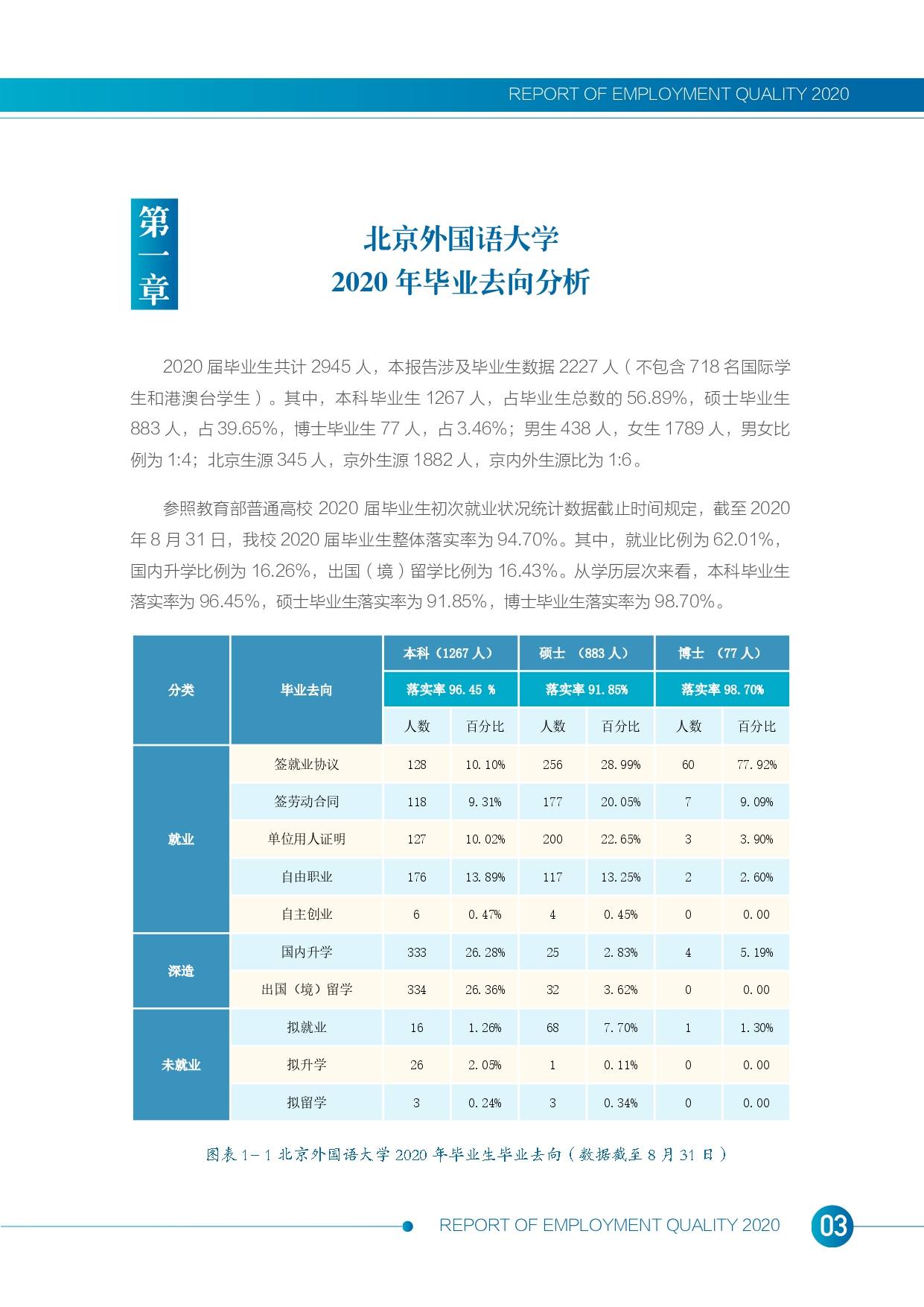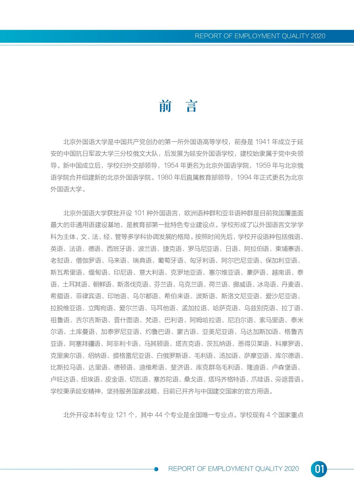 北京外国语拼搏(中国)2020年度毕业生就业质量报告