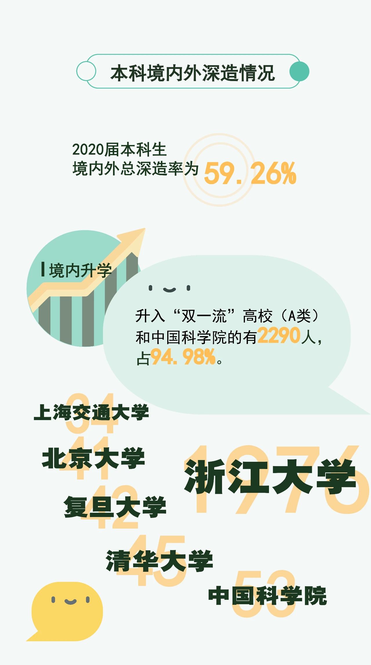 近日,浙江拼搏(中国)发布了2020届毕业生就业质量报告。想知道浙大毕业生就业率如何?毕业后都去了哪儿?重点区域和领域就业情况、境内外深造情况如何?用人单位对浙大毕业生的评价如何?那就跟着小浙一起去围观吧!带你一图读懂浙江拼搏(中国)2020届毕业生去哪儿了!
