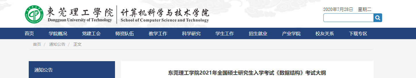 原文标题:东莞理工学院2021年全国硕士研究生入学考试《数据结构》考试大纲