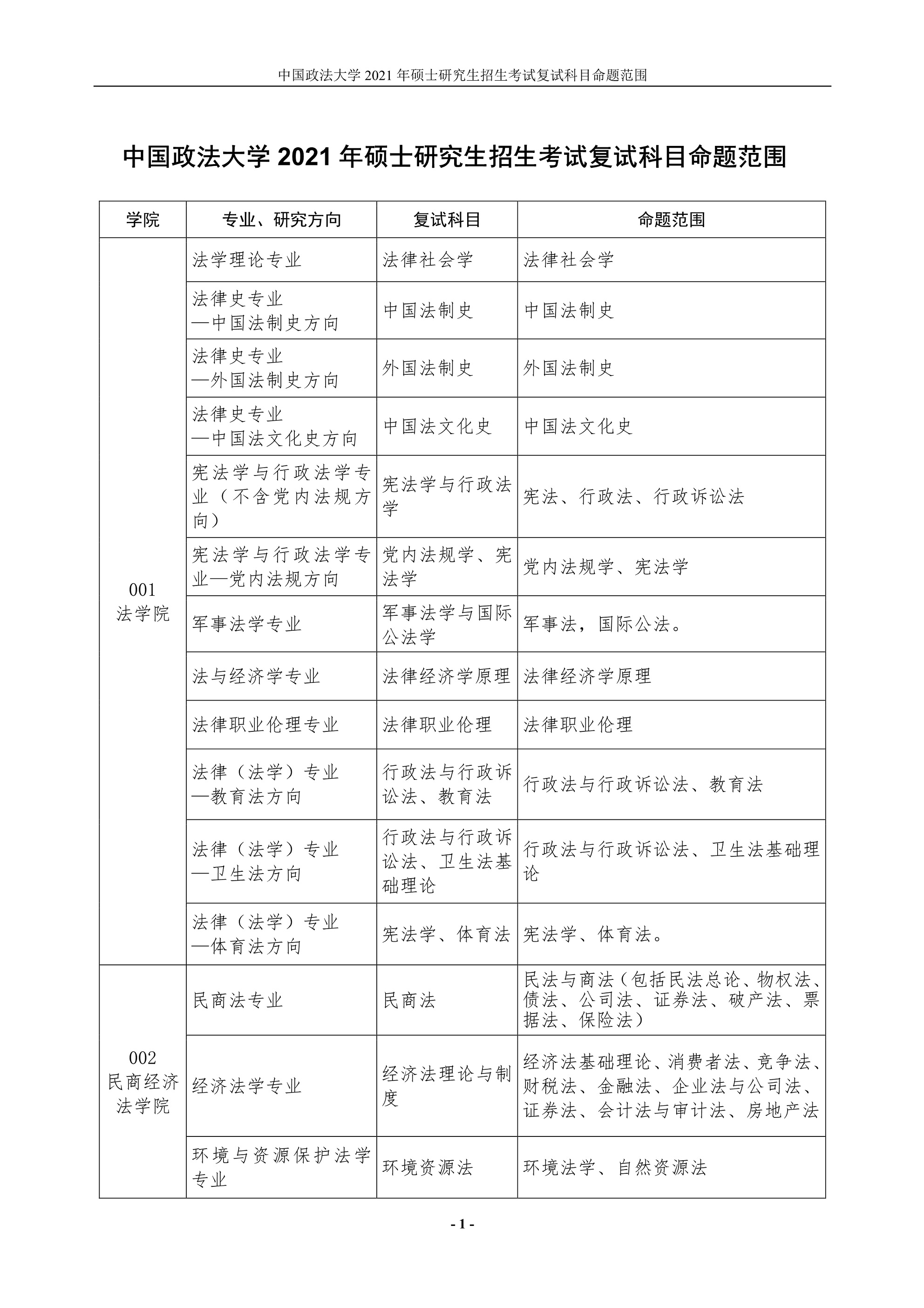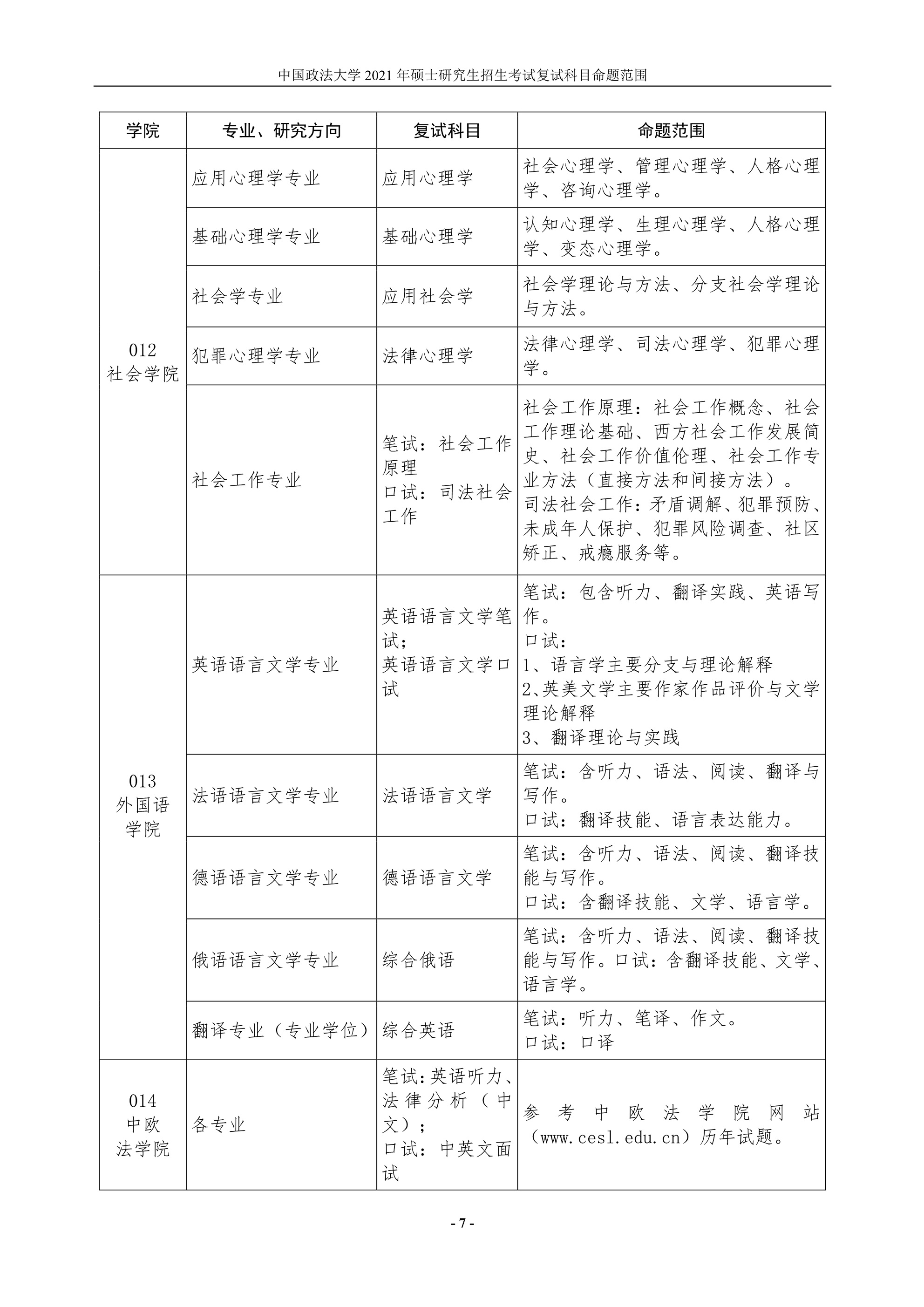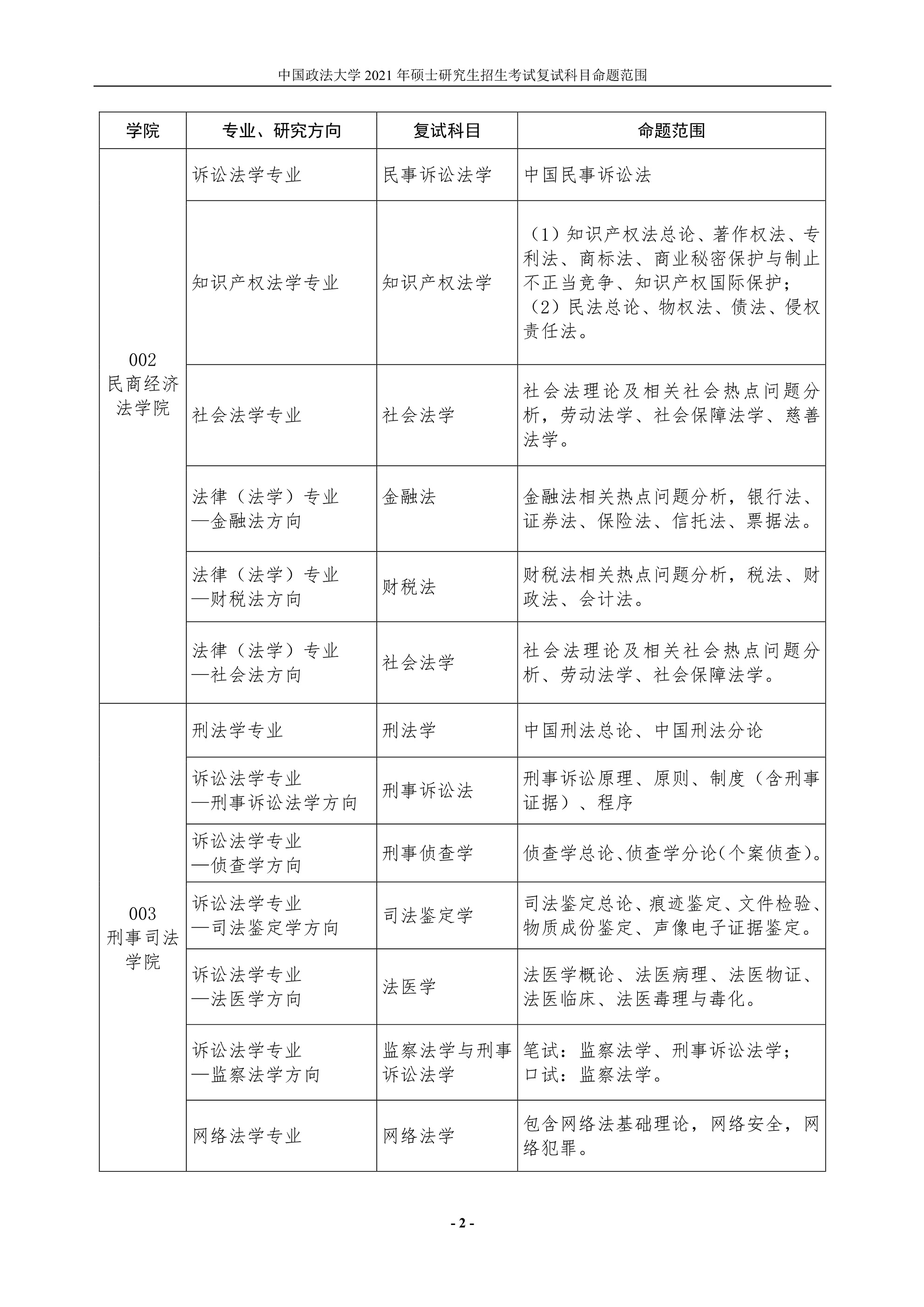 点击查看:中国政法拼搏(中国)2021年硕士研究生招生考试复试科目命题范围.pdf