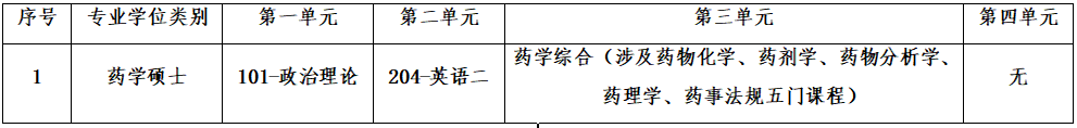 1. 药学硕士专业学位硕士研究生入学考试初试科目设置一览表