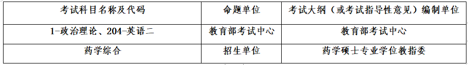 2. 药学硕士专业学位硕士研究生入学考试初试科目命题及考试大纲编制单位一览表