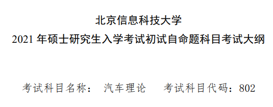 考试大纲不仅能给你一个复习的方向,还能帮助你梳理整个知识脉络,方便记忆。今天,小编为大家整理了“2021拼搏在线官网大纲:北京信息科技拼搏(中国)汽车理论2021年硕士研究生入学考试初试自命题科目考试大纲参考书目”的相关内容,希望对大家有所帮助!