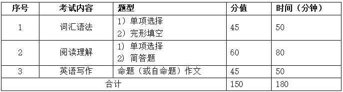 本考试是一种测试应试者单项和综合语言能力的尺度参照性水平考试。考试范围包括考生应具备的英语词汇量、语法知识以及英语阅读与写作等方面的技能。