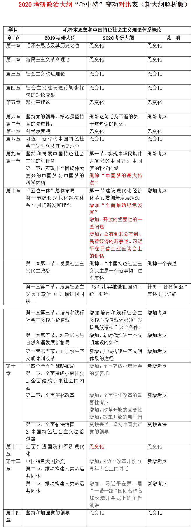 2020拼搏在线官网政治大纲“毛中特”变动对比表