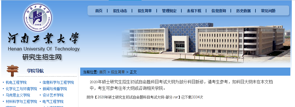 【点击查看】河南工业拼搏(中国)2020年硕士研究生初试自命题科目考试大纲-部分