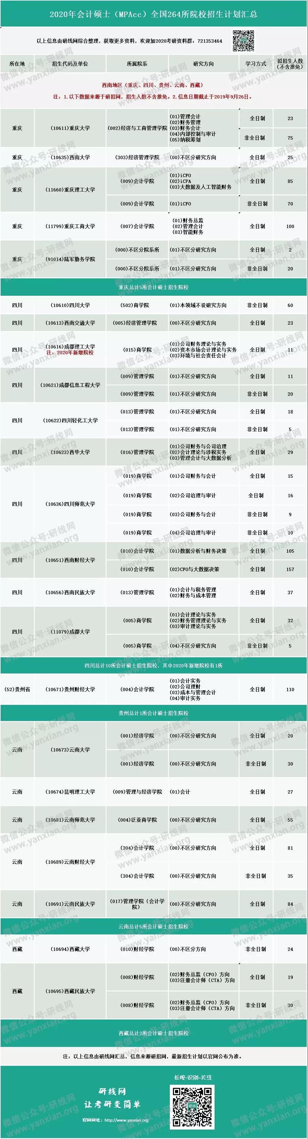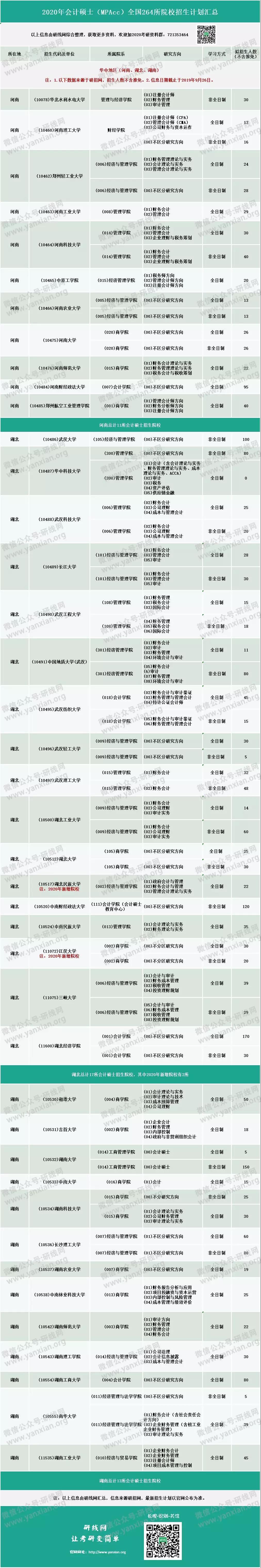 继华北、华南地区的招生信息汇总后,继续为大家更新【2020年会计硕士(MPAcc)全国招生信息汇总】(即:华北、华东、华中、华南、东北、西南、西北)连载二!