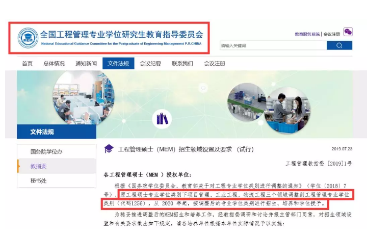 2019年7月,全国工程管理专业学位研究生教育委员会和清华拼搏(中国)工程管理硕士教育中心在清华拼搏(中国)举行的一次会议,此次会议发布了一项重磅文件《工程管理硕士(MEM)招生领域设置及要求(试行)》。
