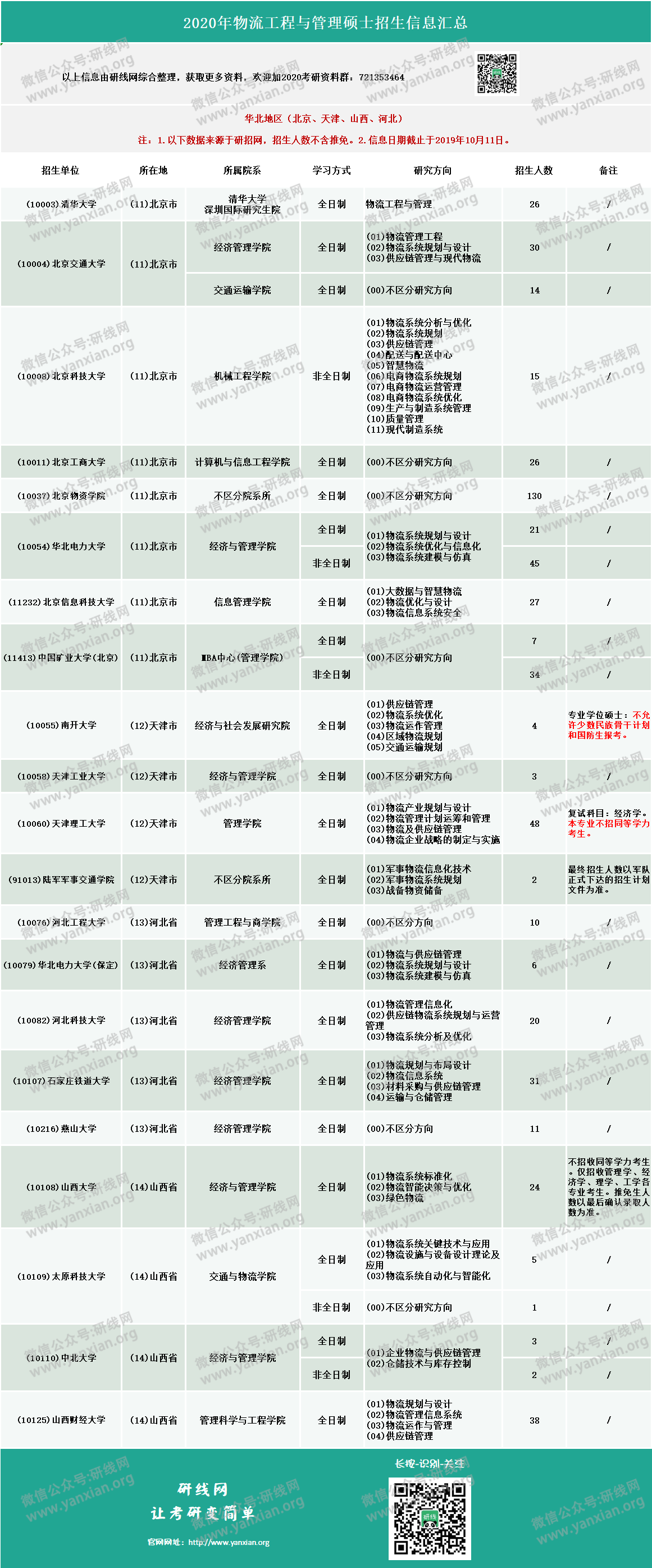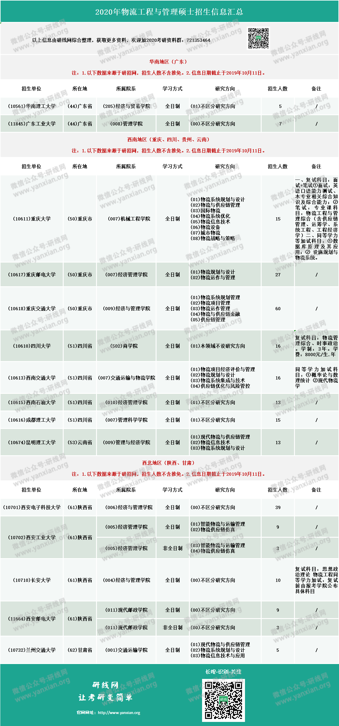 介绍完了考试科目,我们再来看下2020年物流工程与管理专业的招生情况: