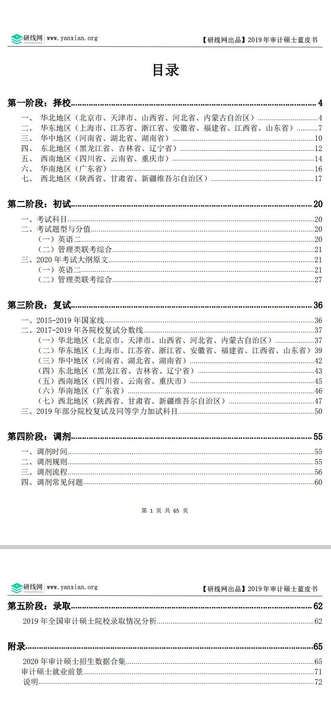 以上招生数据【审计蓝皮书】中已经进行了汇总,获取方式:研线网公众号后台回复“蓝皮书”哦——目录如下!