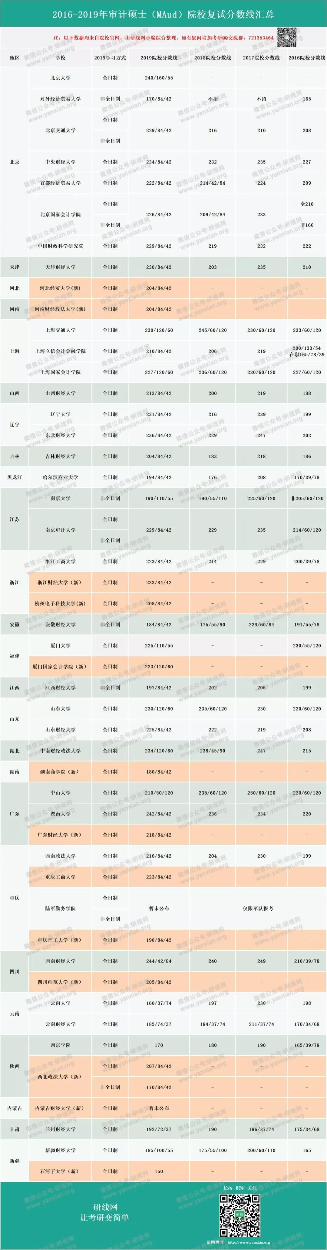 以上就是近三年审计专硕的各院校复试分数线,大家可以根据目前复习情况,对自己有一个衡量。