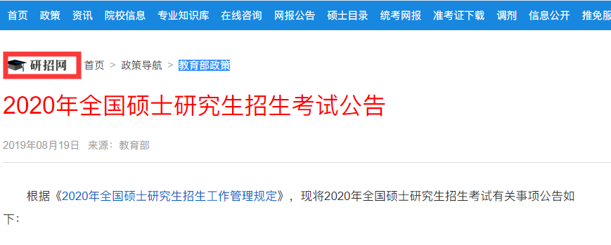 以上是研线网汇总的:“研招网已公布2020年全国硕士研究生招生考试公告”希望对你有帮助!