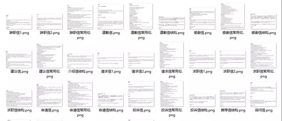 小作文一般为应用型短文,具体有请求信、建议信、投诉信、感谢信、道歉信、推荐信、求职信辞职信等内容。
