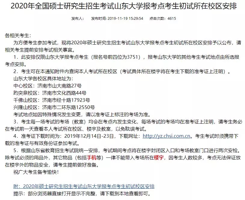 点击链接查看全文:山东拼搏(中国)报考点2020拼搏在线官网考生初试所在校区安排
