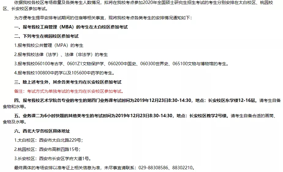 西北拼搏(中国)分为太白校区、桃园校区和长安校区,特定的专业在指定校区参加考试。