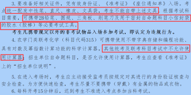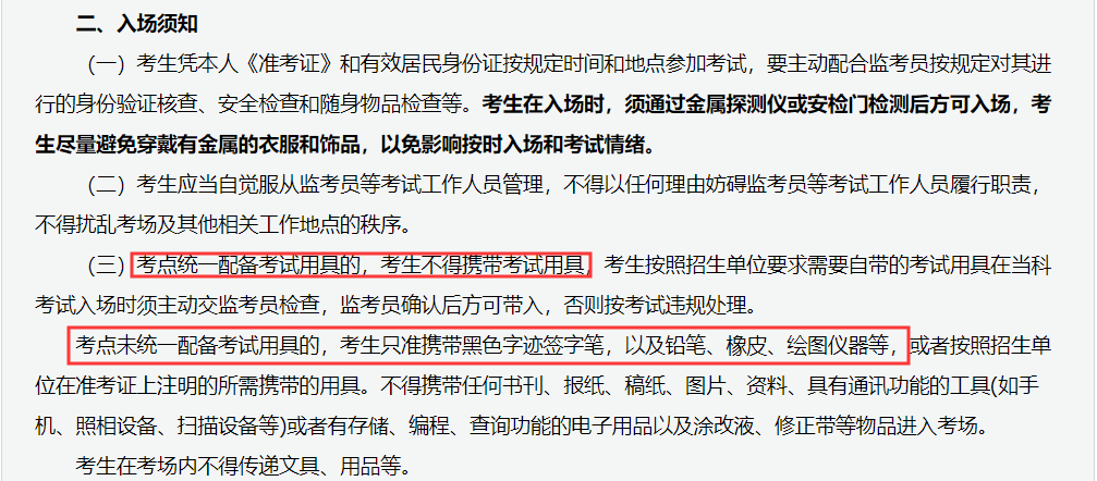 有些地区对考场携带物品有特殊要求,请相关地区的考生仔细核对!!!
